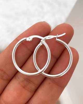PAR DE ARGOLLAS LISAS DE ACERO BLANCO